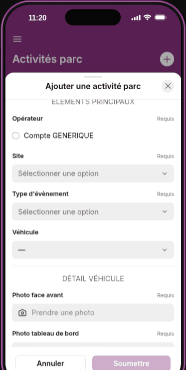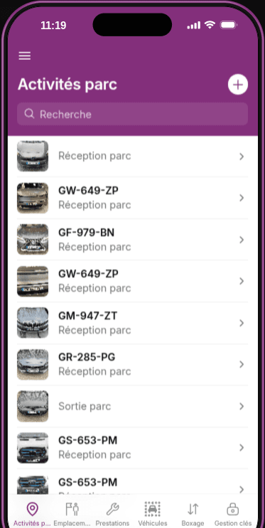 Chaque mouvement de véhicule est horodaté et enregistré. L’opérateur réalise l’état des lieux via un document généré automatiquement.Prestations terrain